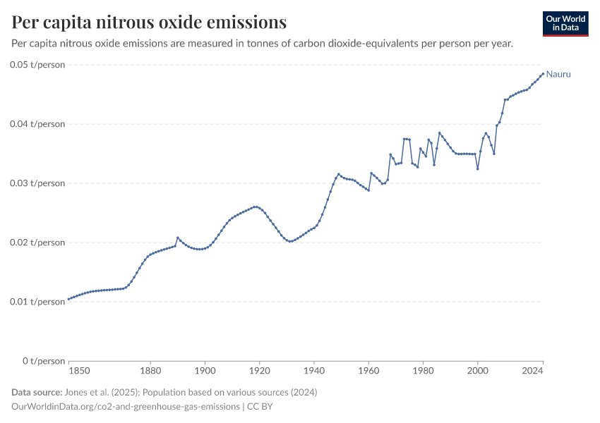 Nitrous oxide: how much does the average person in Nauru emit? Where do emissions come from?