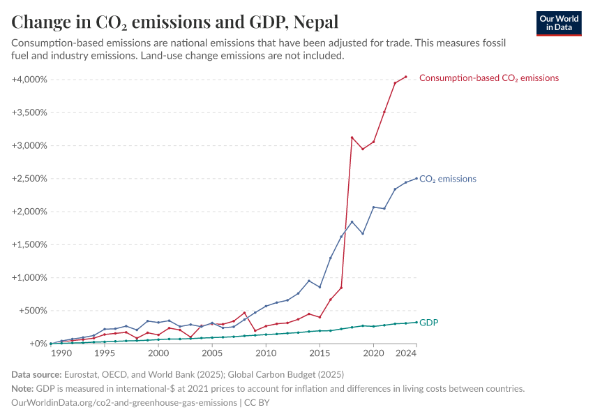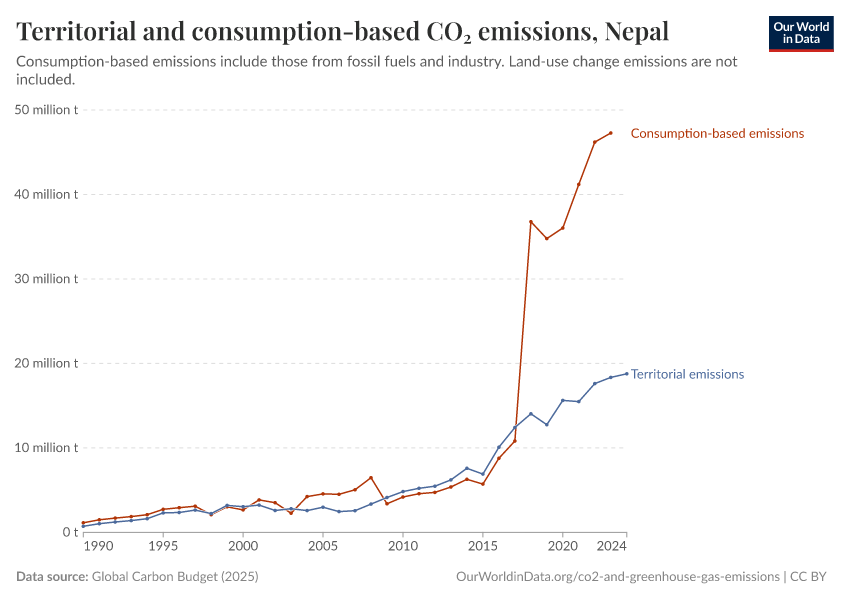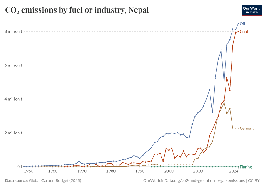 Hannah Ritchie (2025) - “CO₂ and Greenhouse Gas Emissions” Published online at OurWorldinData.org. Retrieved from: 'https://ourworldindata.org/profile/co2/nepal' [Online Resource]BibTeX citation