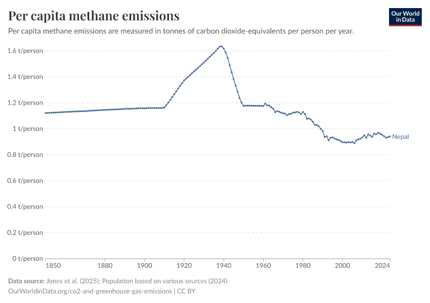 Methane: how much does the average person in Nepal emit? Where do emissions come from?