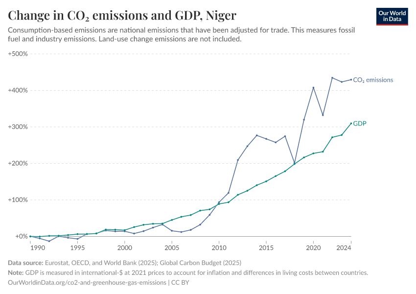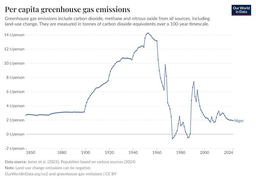 Hannah Ritchie (2025) - “CO₂ and Greenhouse Gas Emissions” Published online at OurWorldinData.org. Retrieved from: 'https://ourworldindata.org/profile/co2/niger' [Online Resource]BibTeX citation