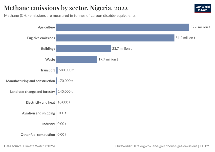 Methane: how much does the average person in Nigeria emit? Where do emissions come from?
