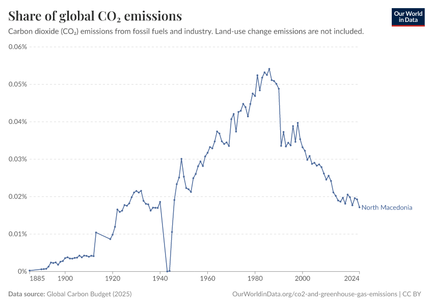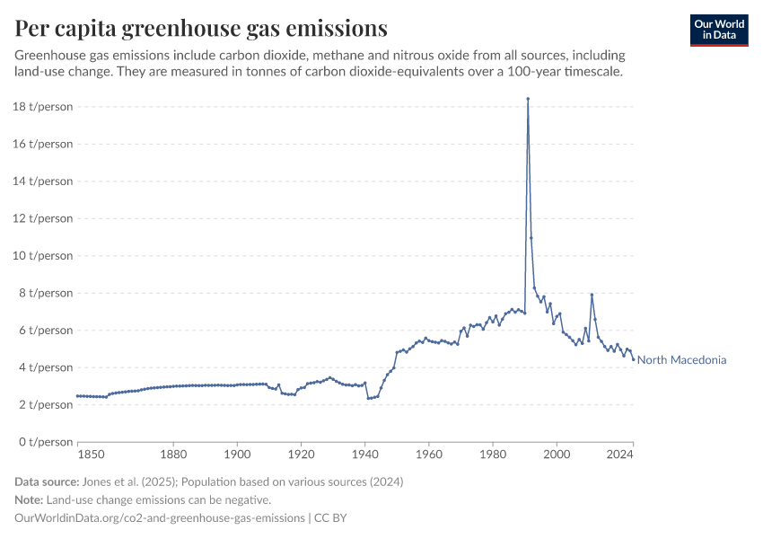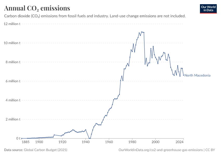 Hannah Ritchie (2025) - “CO₂ and Greenhouse Gas Emissions” Published online at OurWorldinData.org. Retrieved from: 'https://ourworldindata.org/profile/co2/north-macedonia' [Online Resource]BibTeX citation