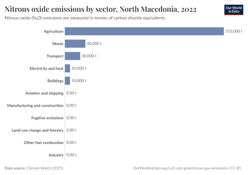 Nitrous oxide: how much does the average person in North Macedonia emit? Where do emissions come from?