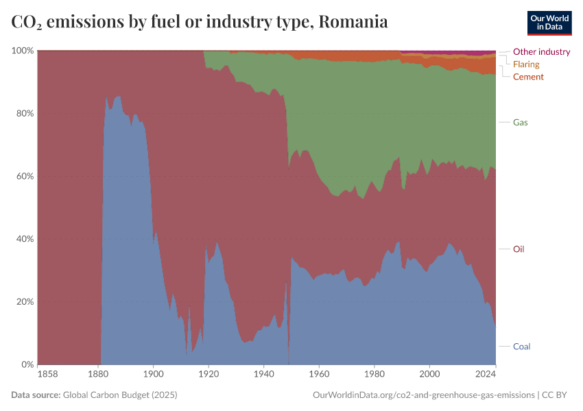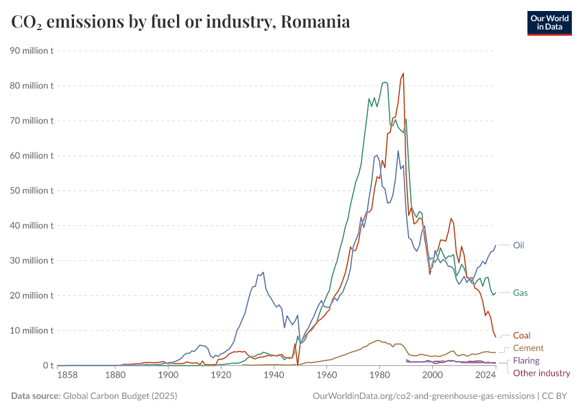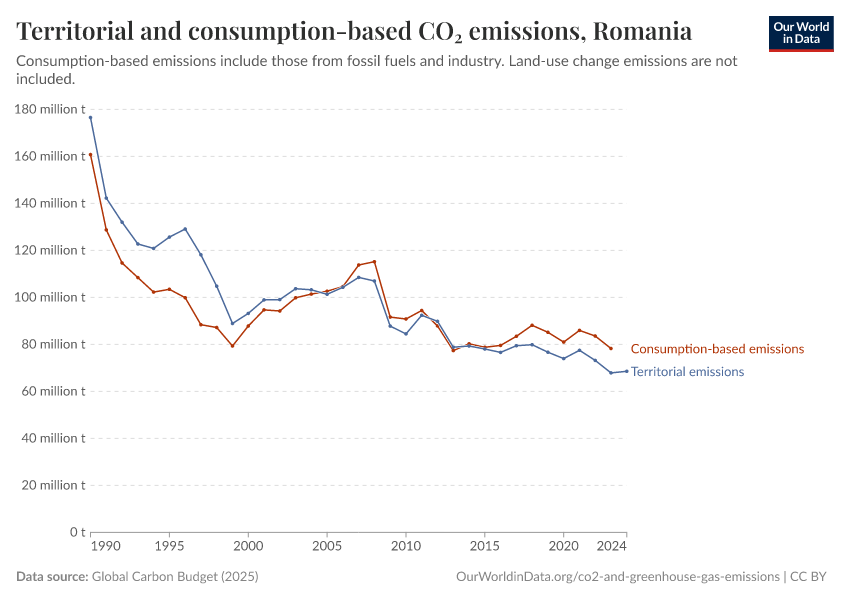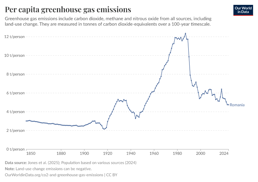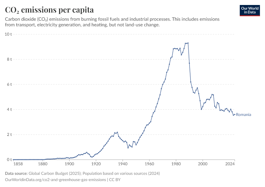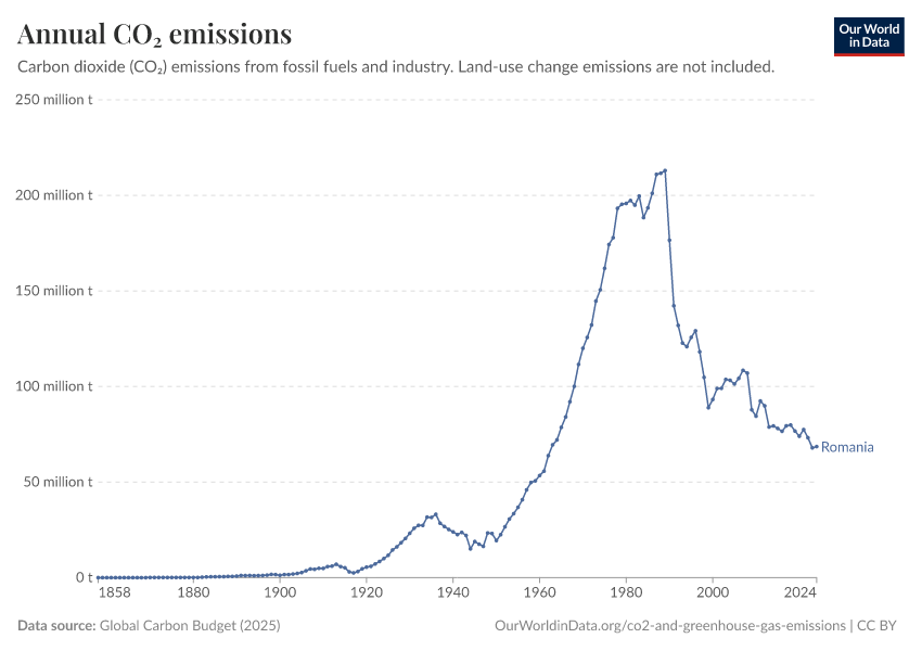 Hannah Ritchie (2025) - “CO₂ and Greenhouse Gas Emissions” Published online at OurWorldinData.org. Retrieved from: 'https://ourworldindata.org/profile/co2/romania' [Online Resource]BibTeX citation