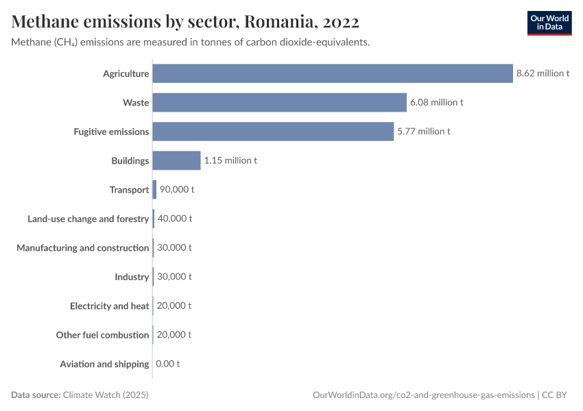 Methane: how much does the average person in Romania emit? Where do emissions come from?