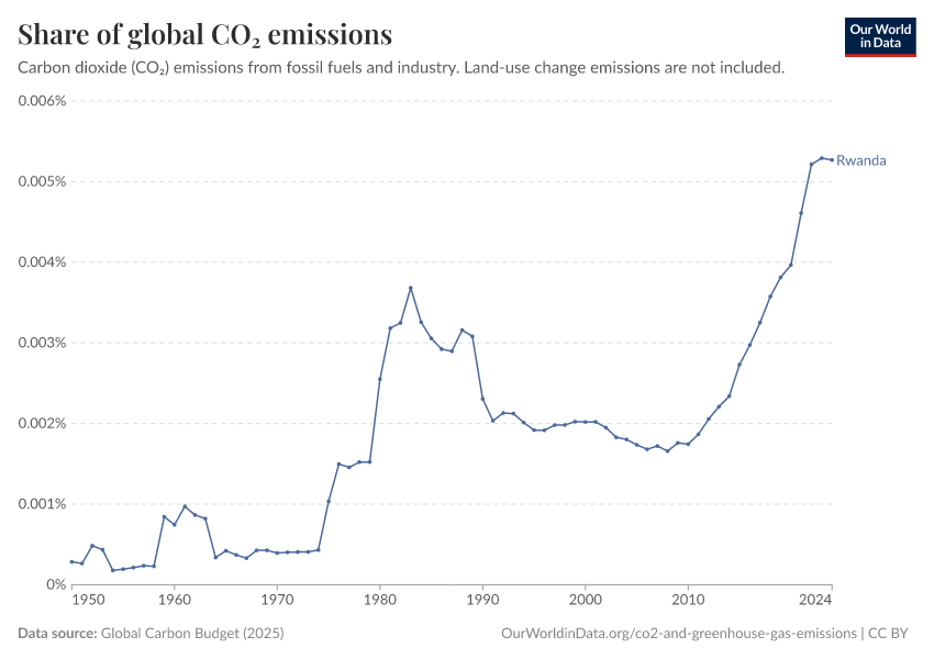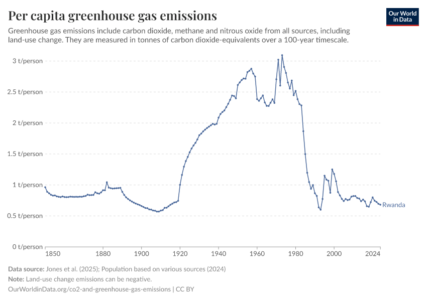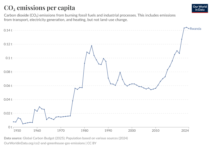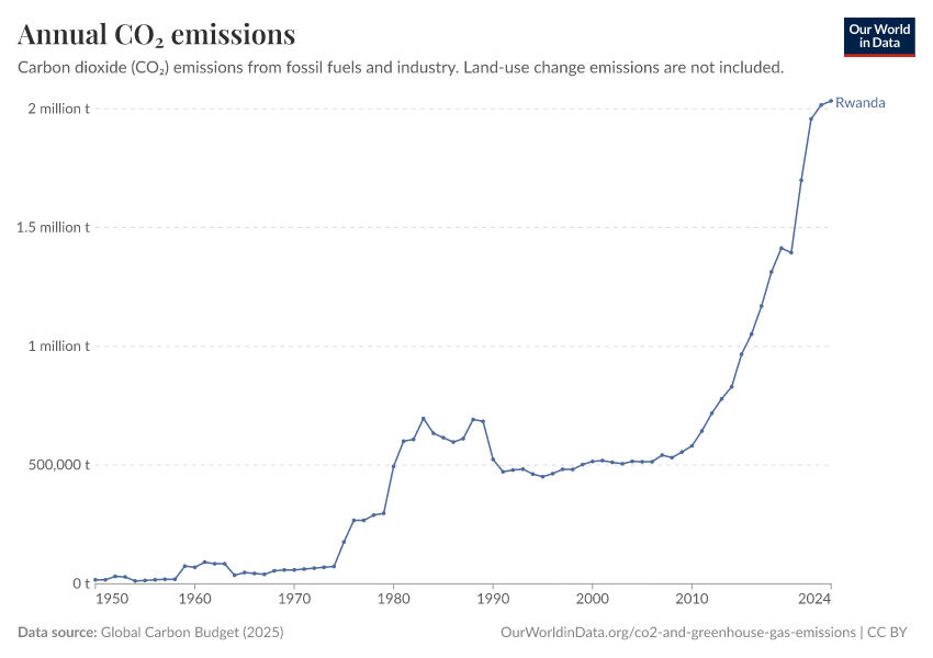 Hannah Ritchie (2025) - “CO₂ and Greenhouse Gas Emissions” Published online at OurWorldinData.org. Retrieved from: 'https://ourworldindata.org/profile/co2/rwanda' [Online Resource]BibTeX citation