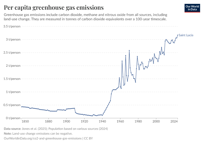 Hannah Ritchie (2025) - “CO₂ and Greenhouse Gas Emissions” Published online at OurWorldinData.org. Retrieved from: 'https://ourworldindata.org/profile/co2/saint-lucia' [Online Resource]BibTeX citation