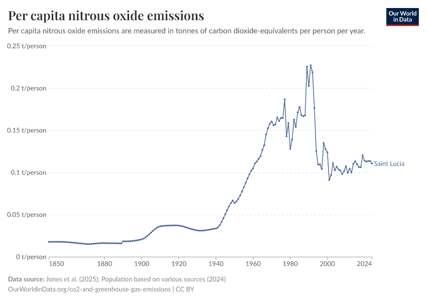 Nitrous oxide: how much does the average person in Saint Lucia emit? Where do emissions come from?