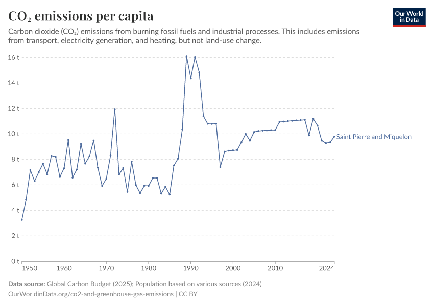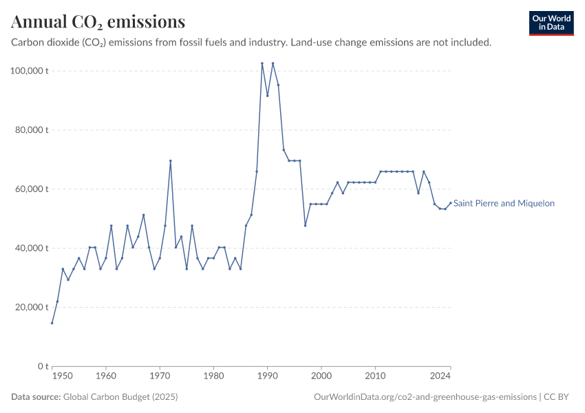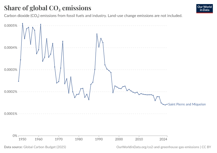 Hannah Ritchie (2025) - “CO₂ and Greenhouse Gas Emissions” Published online at OurWorldinData.org. Retrieved from: 'https://ourworldindata.org/profile/co2/saint-pierre-and-miquelon' [Online Resource]BibTeX citation