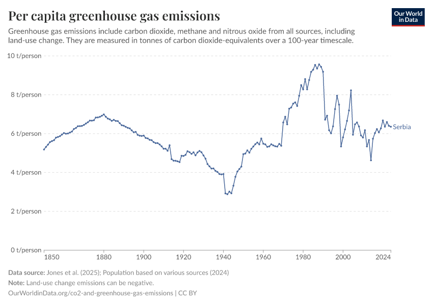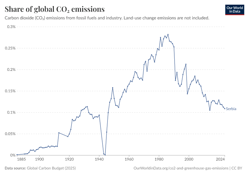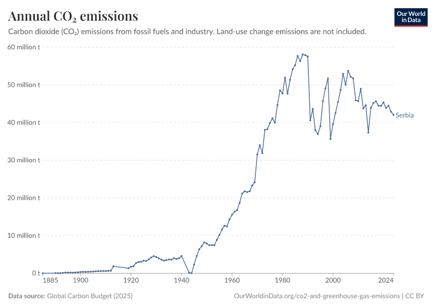Hannah Ritchie (2025) - “CO₂ and Greenhouse Gas Emissions” Published online at OurWorldinData.org. Retrieved from: 'https://ourworldindata.org/profile/co2/serbia' [Online Resource]BibTeX citation