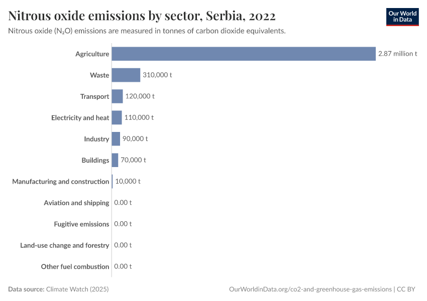 Nitrous oxide: how much does the average person in Serbia emit? Where do emissions come from?