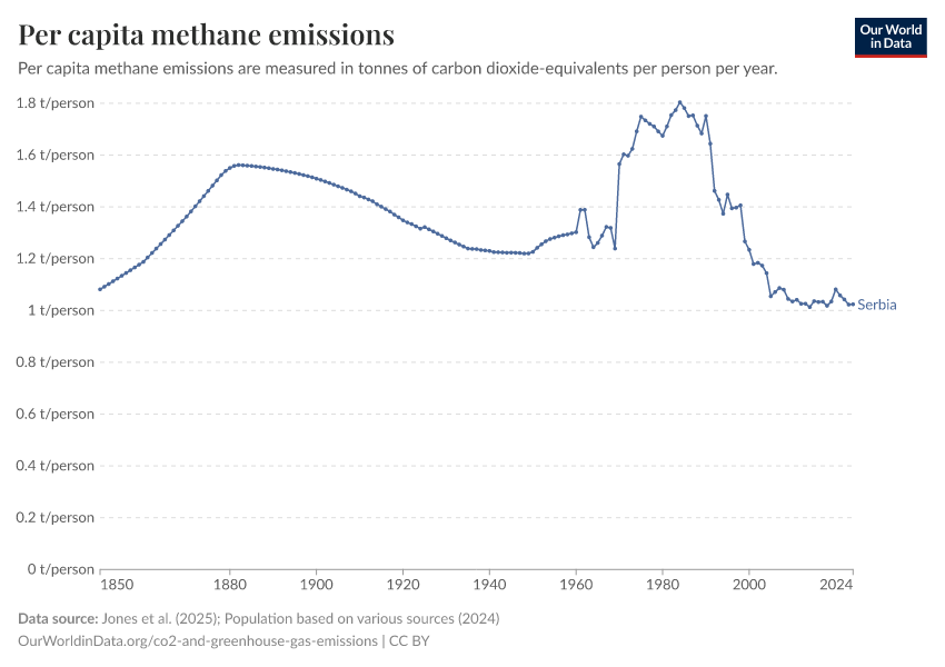 Methane: how much does the average person in Serbia emit? Where do emissions come from?