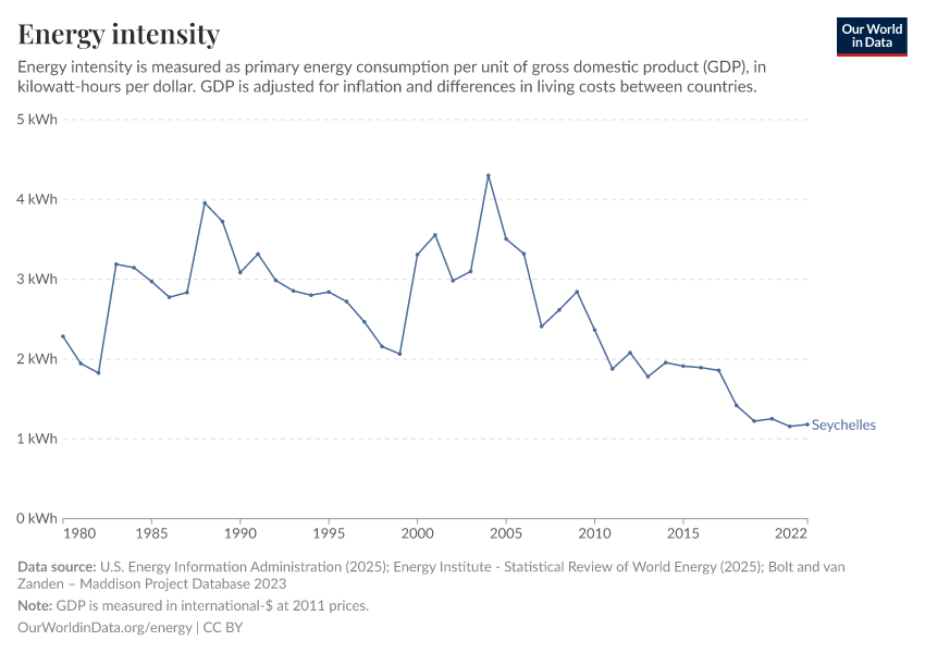 Energy intensity: how much energy does the Seychelles use per unit of GDP?