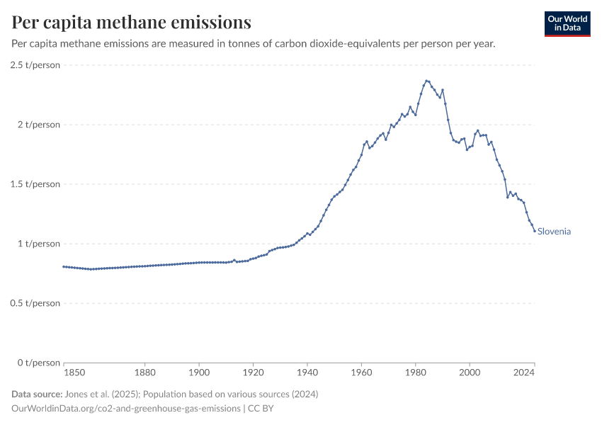 Methane: how much does the average person in Slovenia emit? Where do emissions come from?