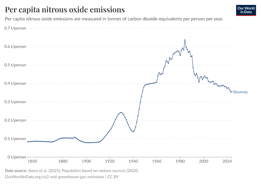 Nitrous oxide: how much does the average person in Slovenia emit? Where do emissions come from?