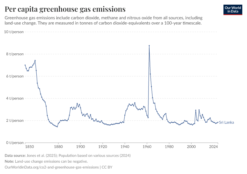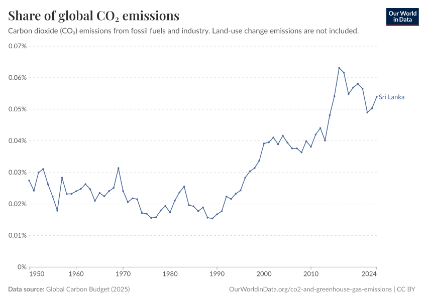Hannah Ritchie (2025) - “CO₂ and Greenhouse Gas Emissions” Published online at OurWorldinData.org. Retrieved from: 'https://ourworldindata.org/profile/co2/sri-lanka' [Online Resource]BibTeX citation