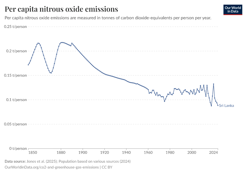 Nitrous oxide: how much does the average person in Sri Lanka emit? Where do emissions come from?