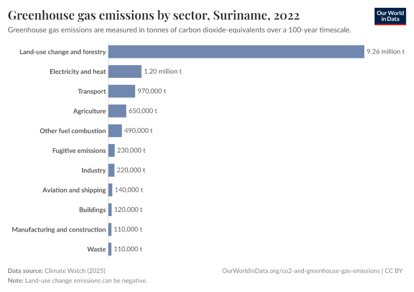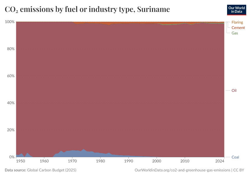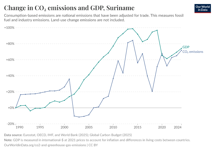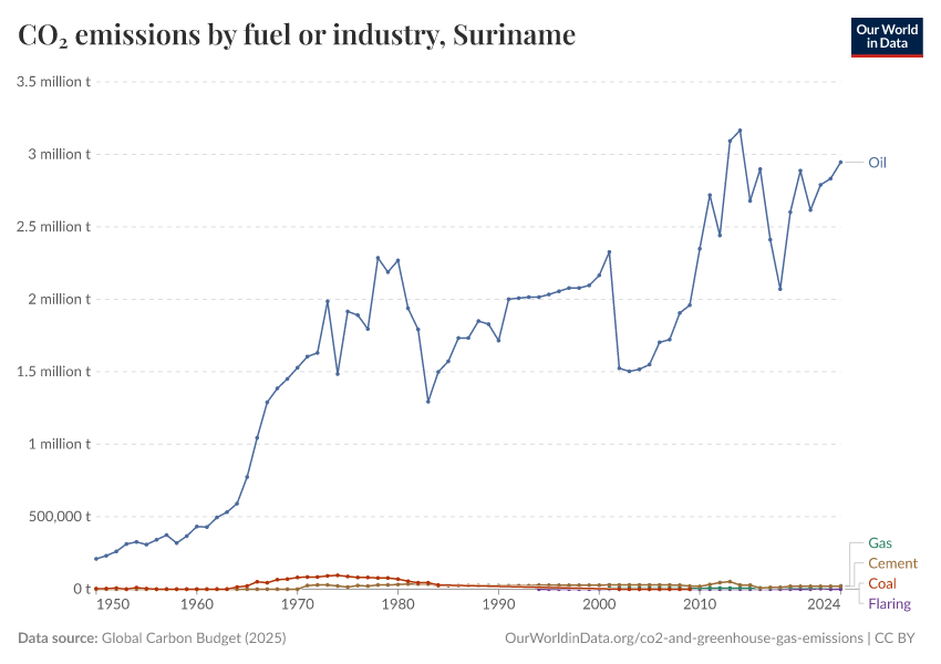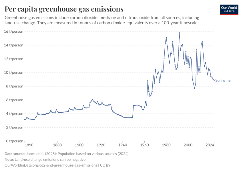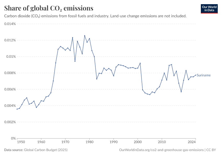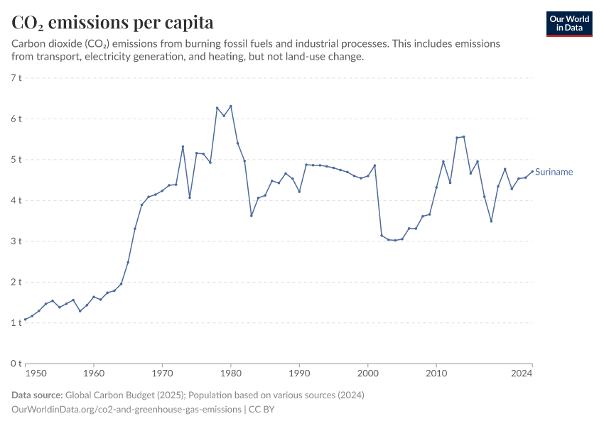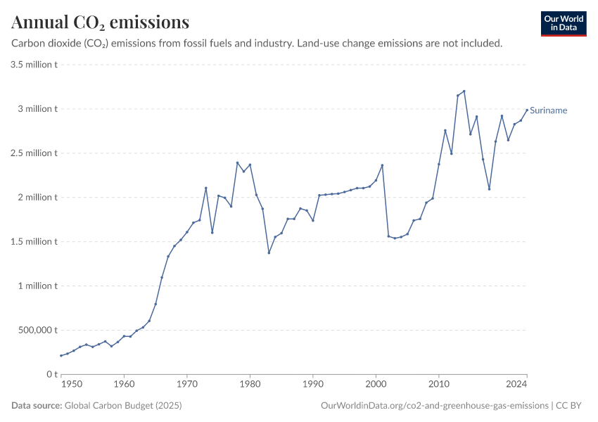Hannah Ritchie (2025) - “CO₂ and Greenhouse Gas Emissions” Published online at OurWorldinData.org. Retrieved from: 'https://ourworldindata.org/profile/co2/suriname' [Online Resource]BibTeX citation