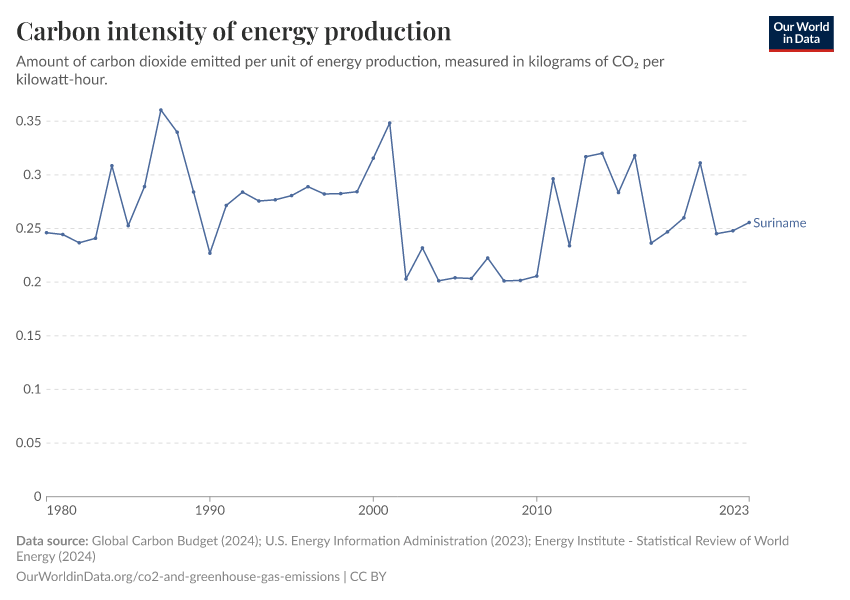 Carbon intensity: how much carbon does Suriname emit per unit of energy?