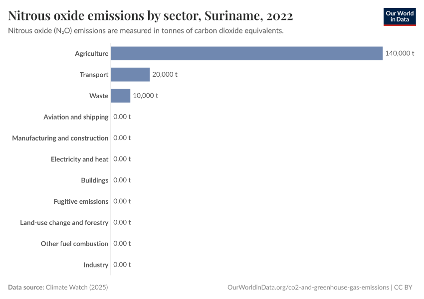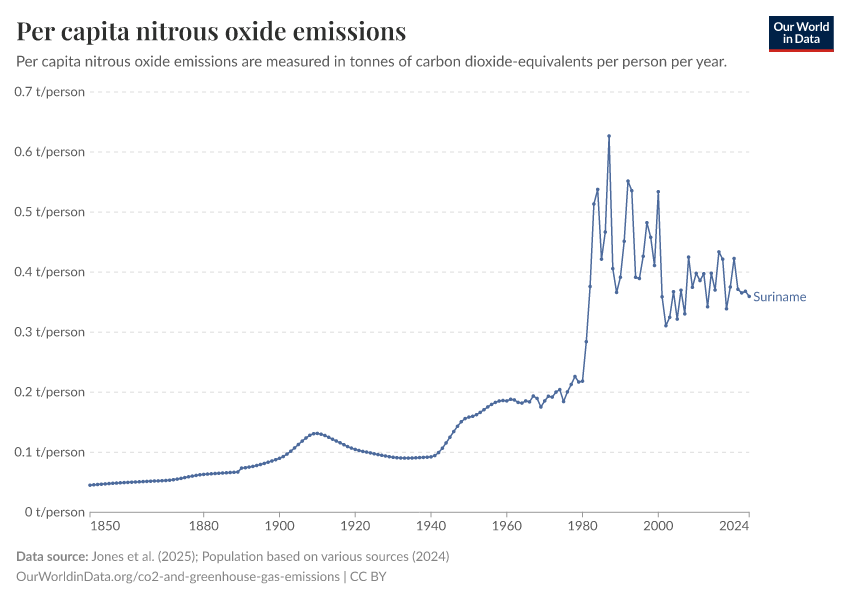 Nitrous oxide: how much does the average person in Suriname emit? Where do emissions come from?