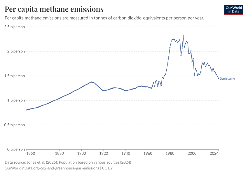 Methane: how much does the average person in Suriname emit? Where do emissions come from?