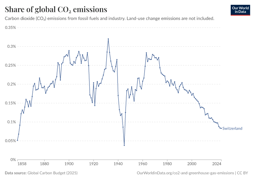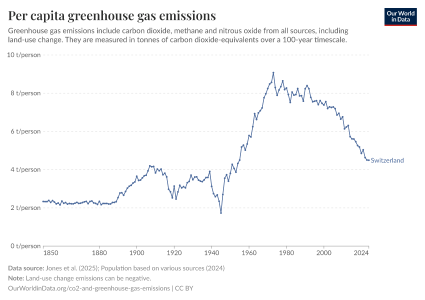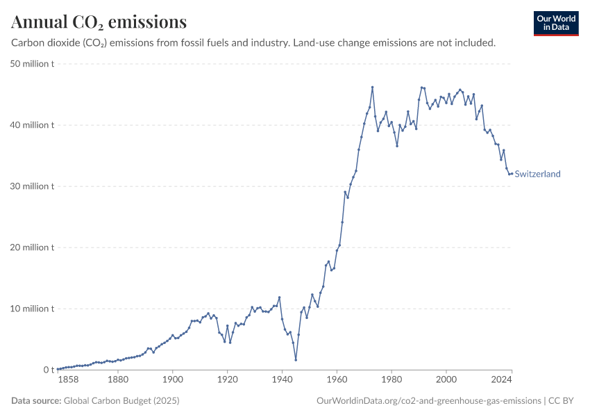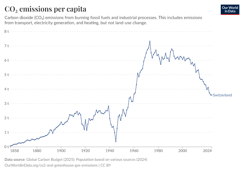 Hannah Ritchie (2025) - “CO₂ and Greenhouse Gas Emissions” Published online at OurWorldinData.org. Retrieved from: 'https://ourworldindata.org/profile/co2/switzerland' [Online Resource]BibTeX citation