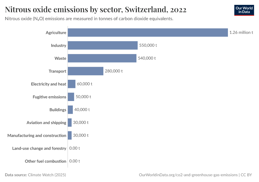 Nitrous oxide: how much does the average person in Switzerland emit? Where do emissions come from?