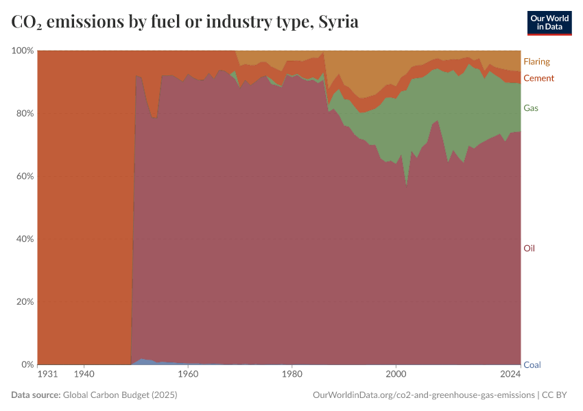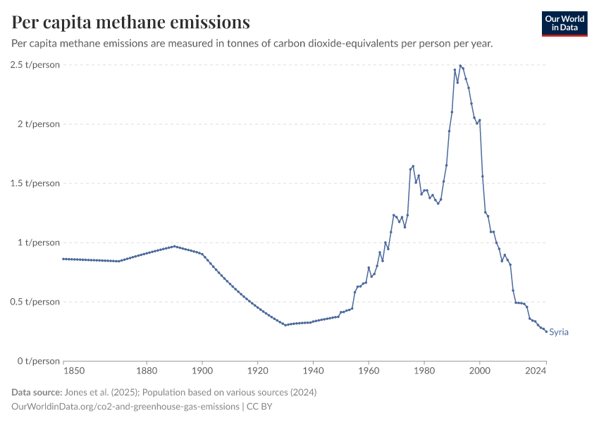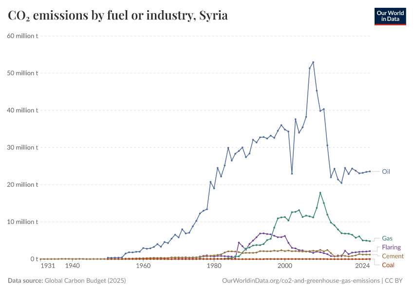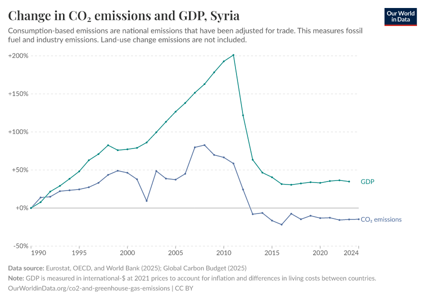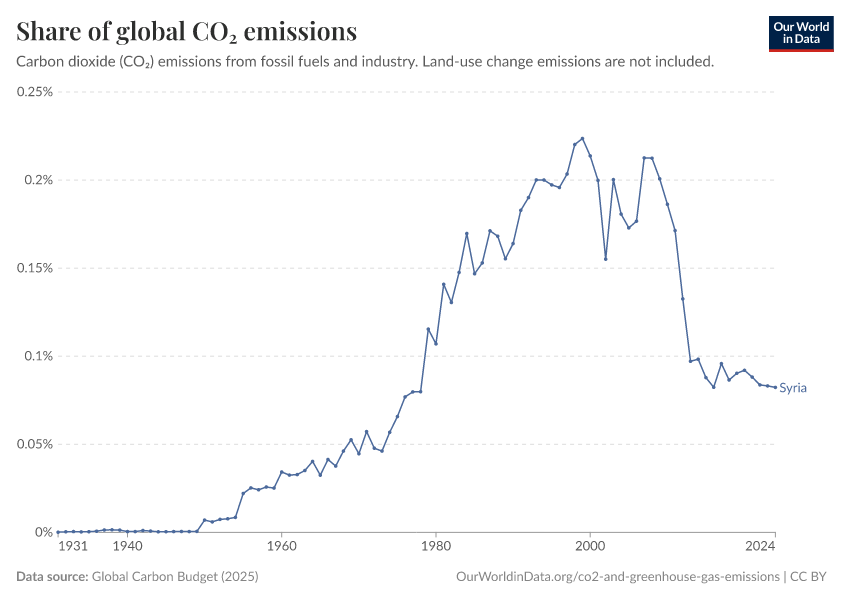 Hannah Ritchie (2025) - “CO₂ and Greenhouse Gas Emissions” Published online at OurWorldinData.org. Retrieved from: 'https://ourworldindata.org/profile/co2/syria' [Online Resource]BibTeX citation