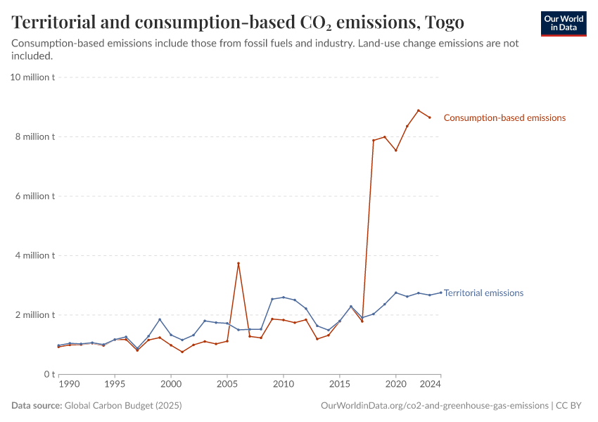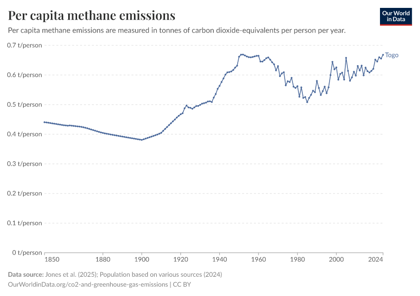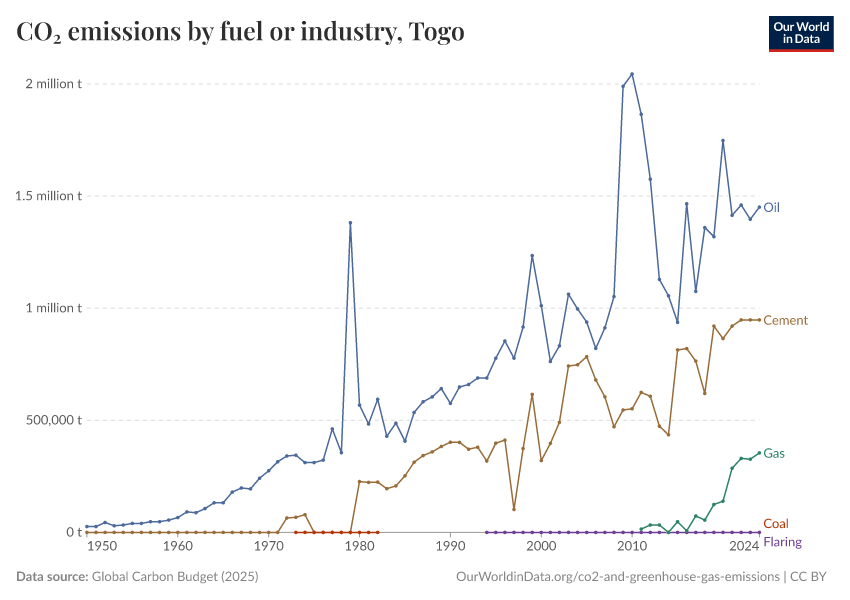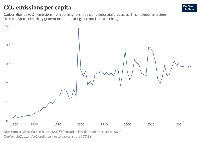 Hannah Ritchie (2025) - “CO₂ and Greenhouse Gas Emissions” Published online at OurWorldinData.org. Retrieved from: 'https://ourworldindata.org/profile/co2/togo' [Online Resource]BibTeX citation