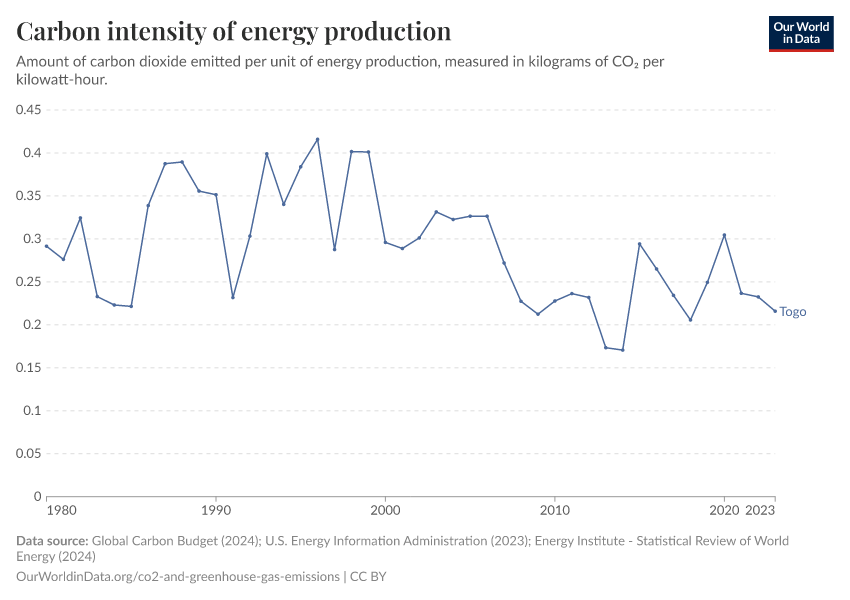 Carbon intensity: how much carbon does Togo emit per unit of energy?