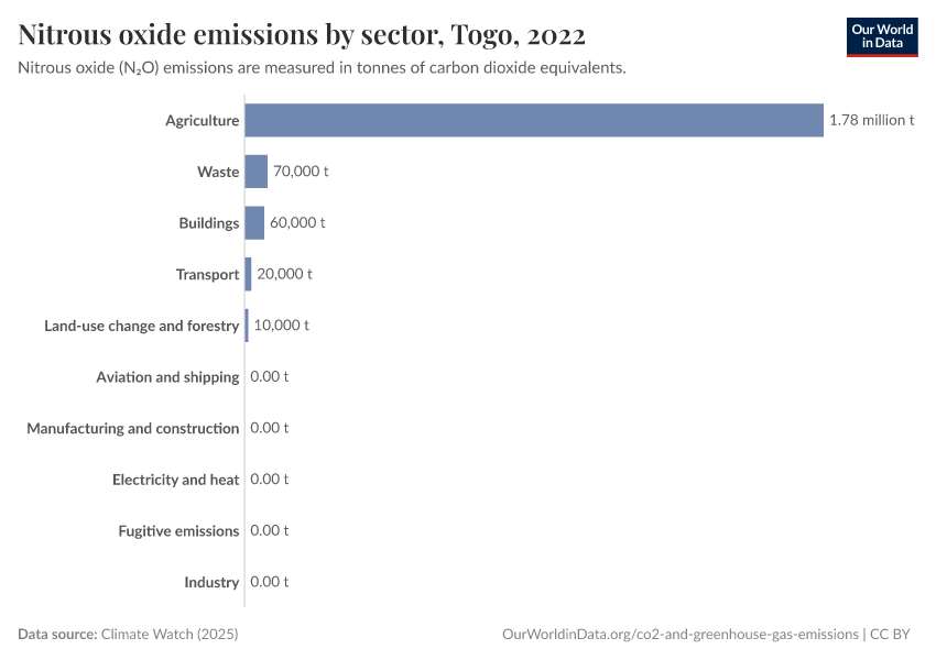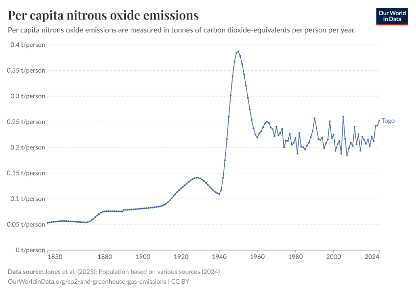 Nitrous oxide: how much does the average person in Togo emit? Where do emissions come from?