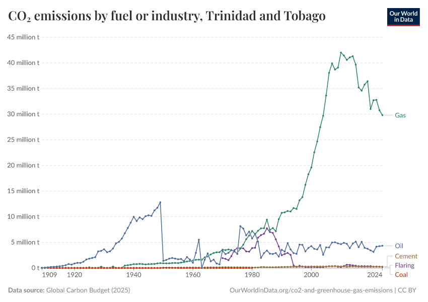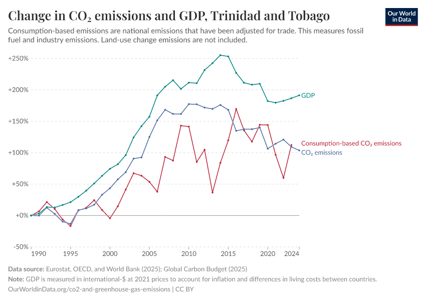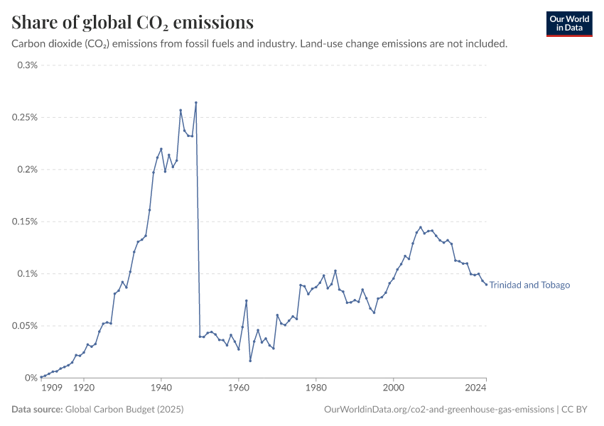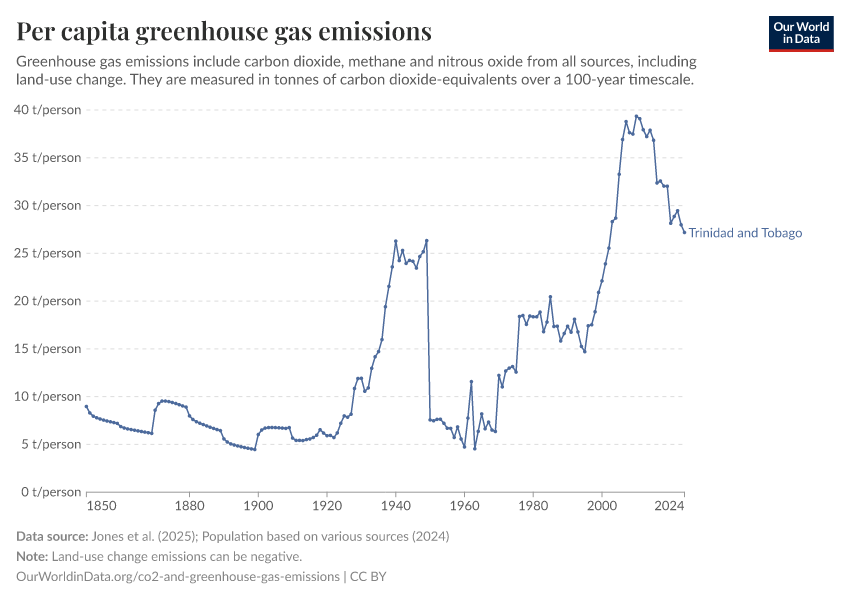 Hannah Ritchie (2025) - “CO₂ and Greenhouse Gas Emissions” Published online at OurWorldinData.org. Retrieved from: 'https://ourworldindata.org/profile/co2/trinidad-and-tobago' [Online Resource]BibTeX citation
