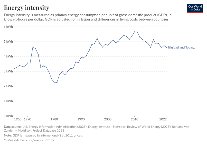 Energy intensity: how much energy does Trinidad and Tobago use per unit of GDP?