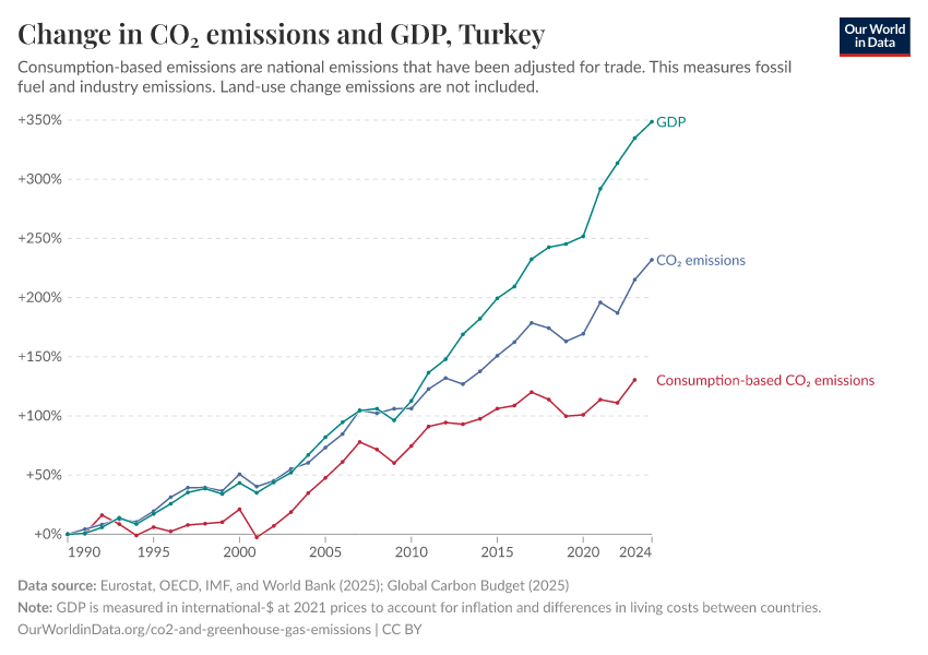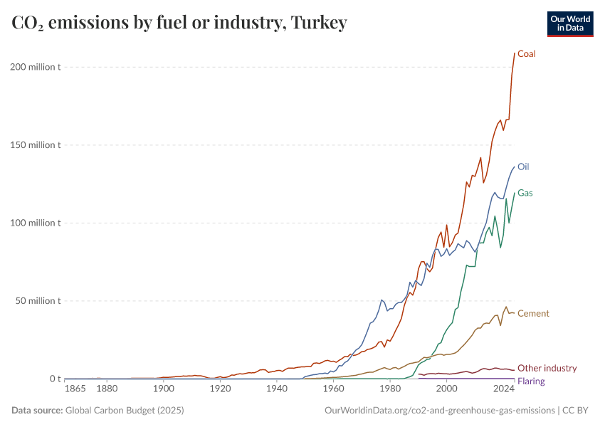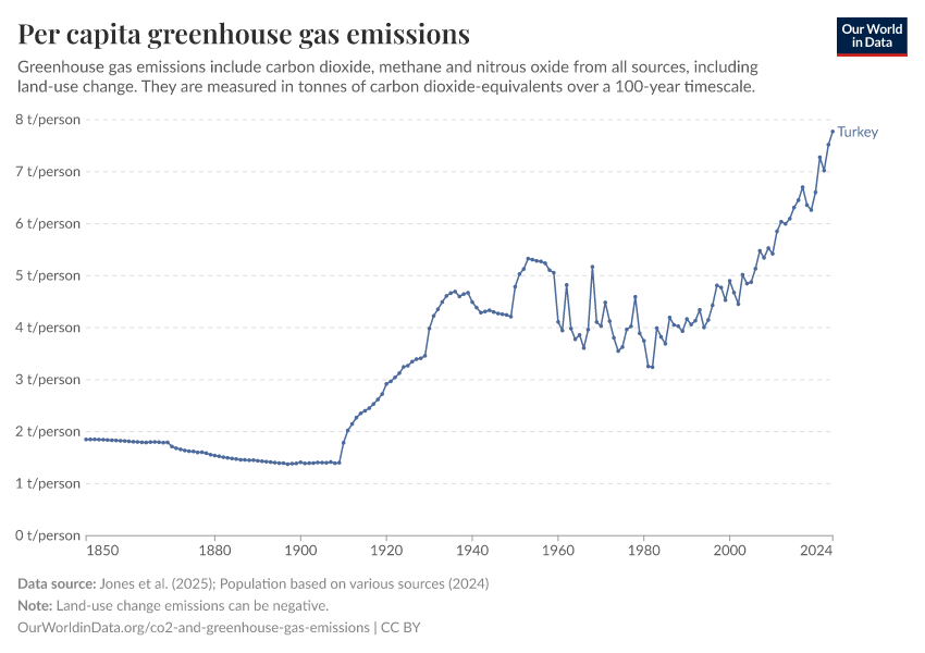 Hannah Ritchie (2025) - “CO₂ and Greenhouse Gas Emissions” Published online at OurWorldinData.org. Retrieved from: 'https://ourworldindata.org/profile/co2/turkey' [Online Resource]BibTeX citation