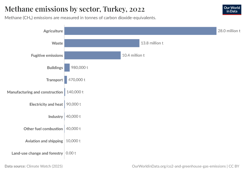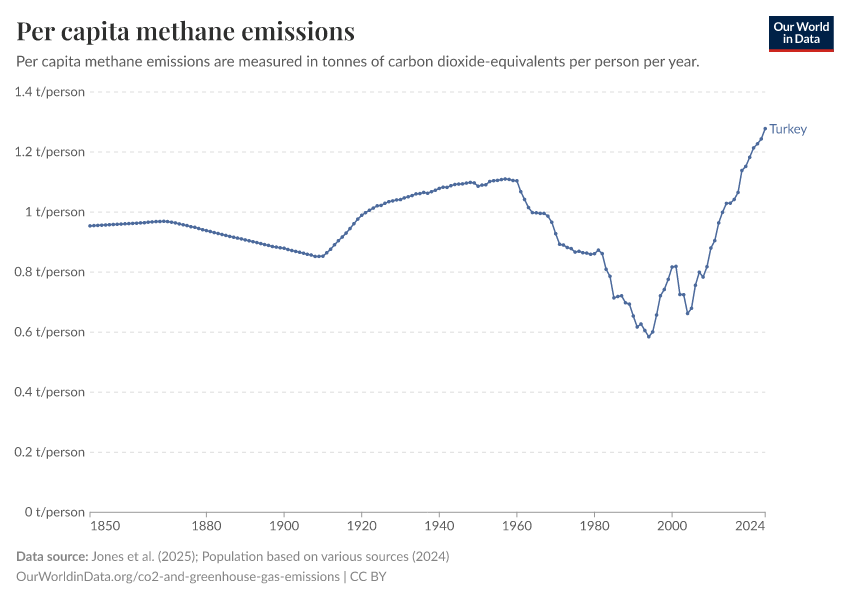 Methane: how much does the average person in Turkey emit? Where do emissions come from?