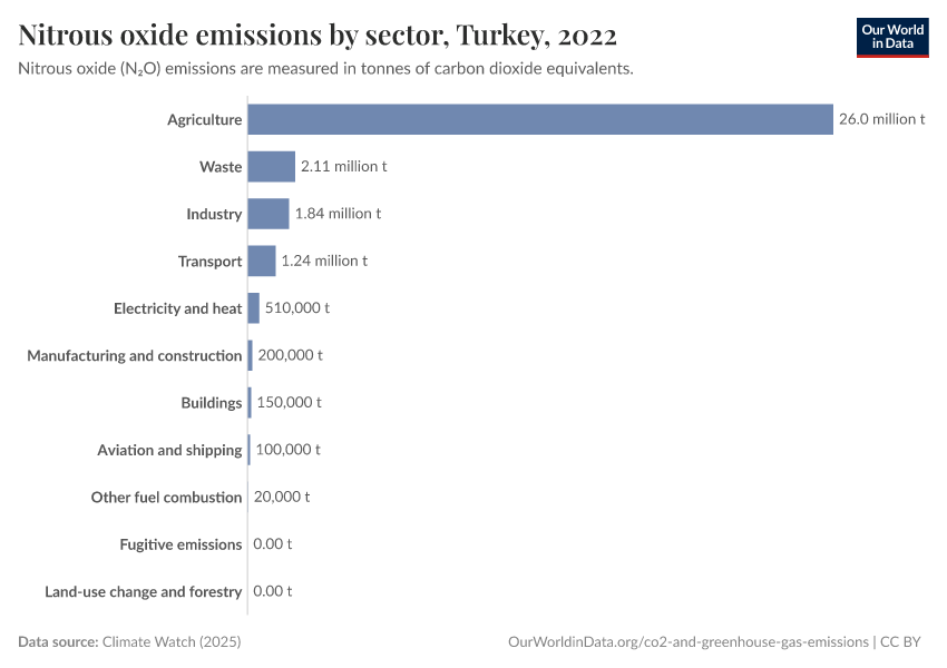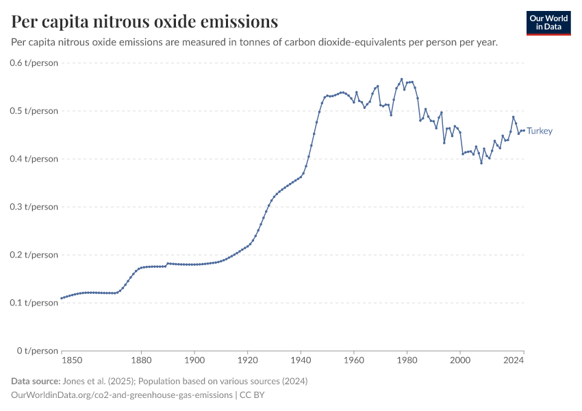 Nitrous oxide: how much does the average person in Turkey emit? Where do emissions come from?