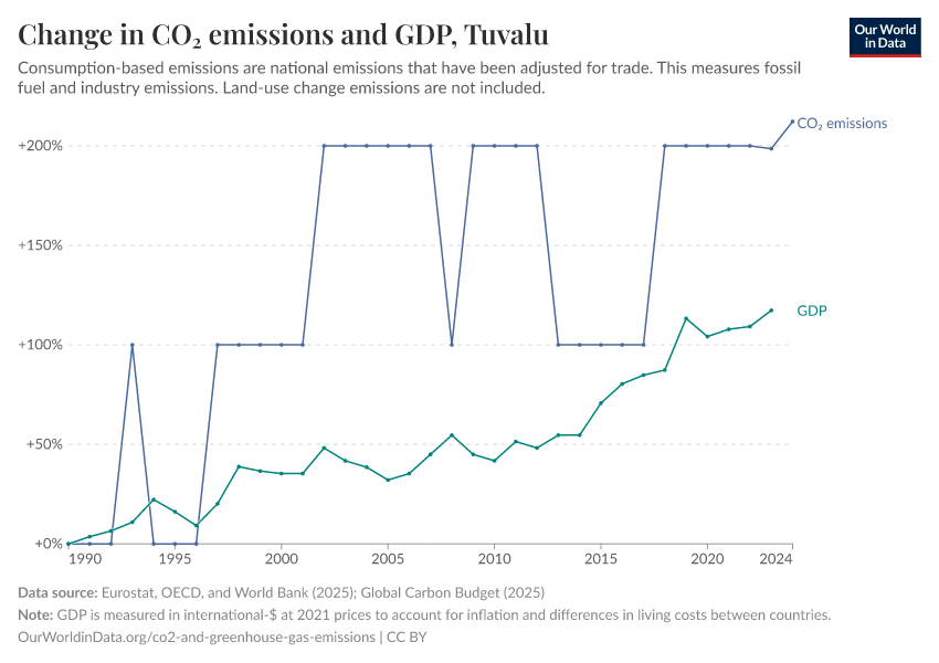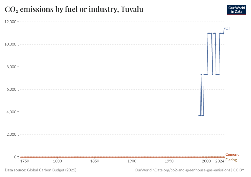 Hannah Ritchie (2025) - “CO₂ and Greenhouse Gas Emissions” Published online at OurWorldinData.org. Retrieved from: 'https://ourworldindata.org/profile/co2/tuvalu' [Online Resource]BibTeX citation