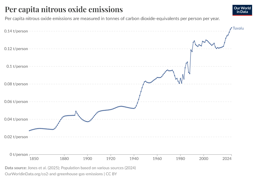 Nitrous oxide: how much does the average person in Tuvalu emit? Where do emissions come from?
