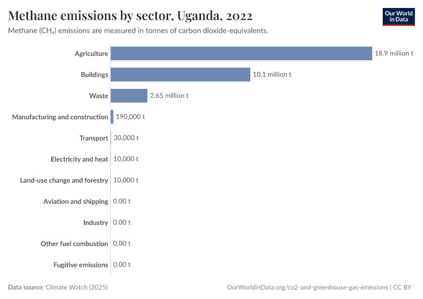 Methane: how much does the average person in Uganda emit? Where do emissions come from?