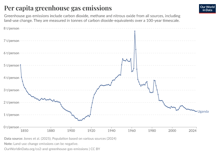 Hannah Ritchie (2025) - “CO₂ and Greenhouse Gas Emissions” Published online at OurWorldinData.org. Retrieved from: 'https://ourworldindata.org/profile/co2/uganda' [Online Resource]BibTeX citation