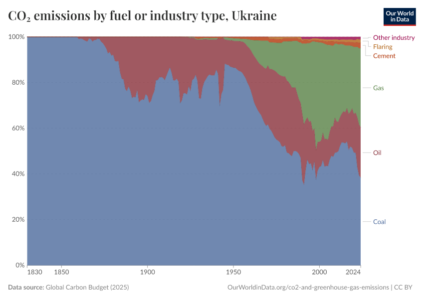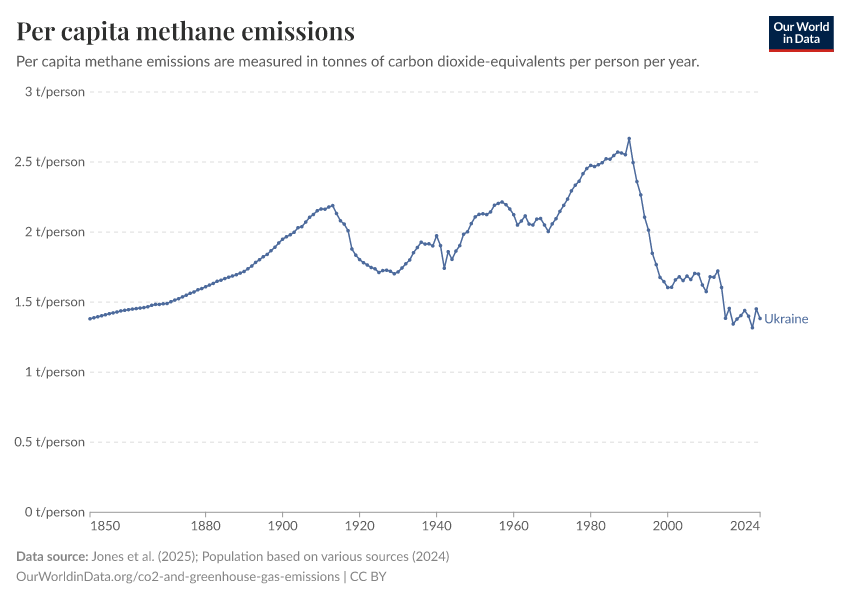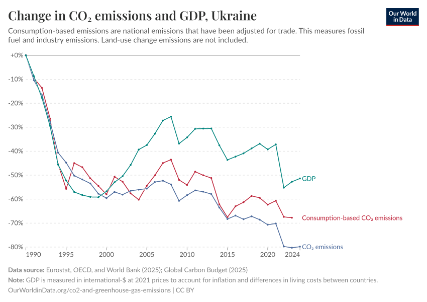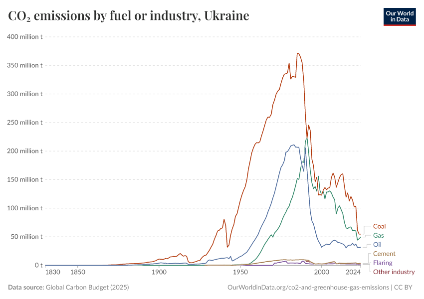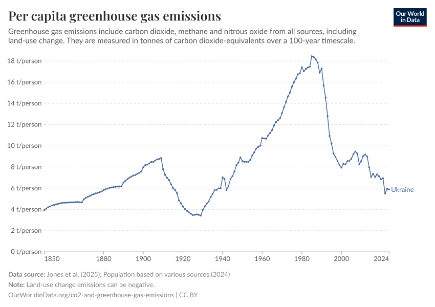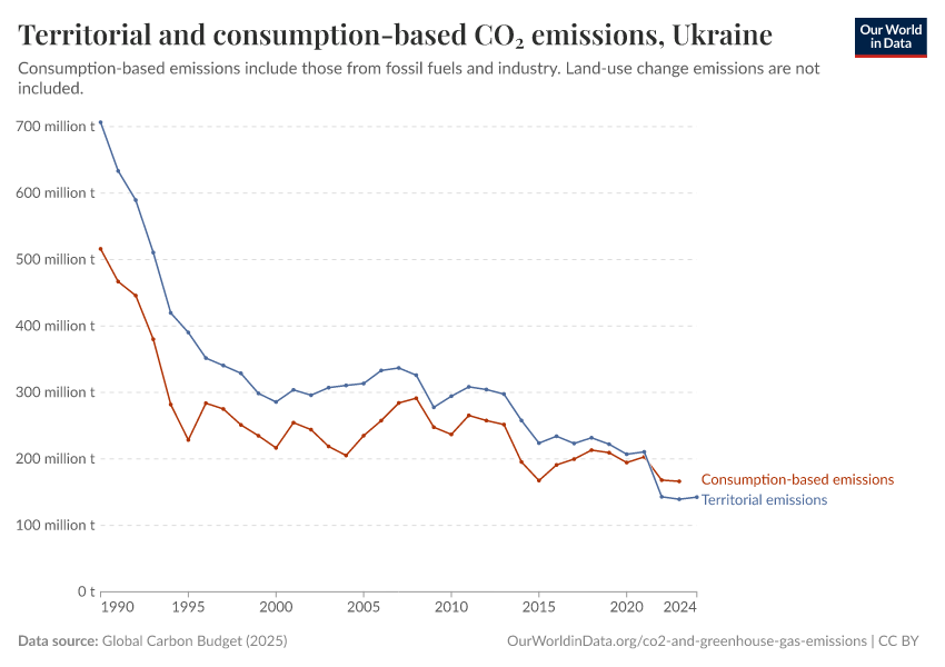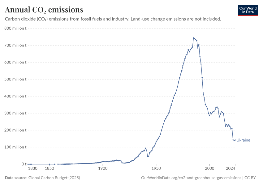 Hannah Ritchie (2025) - “CO₂ and Greenhouse Gas Emissions” Published online at OurWorldinData.org. Retrieved from: 'https://ourworldindata.org/profile/co2/ukraine' [Online Resource]BibTeX citation