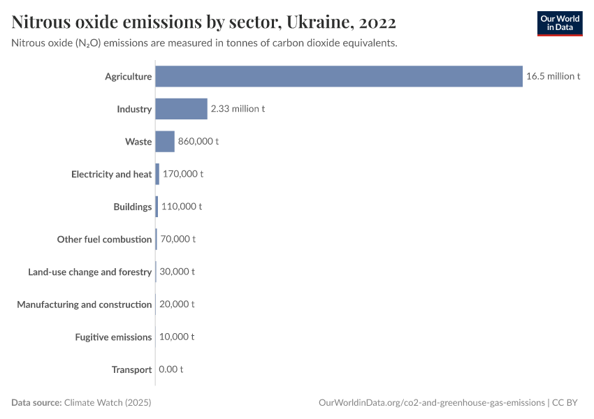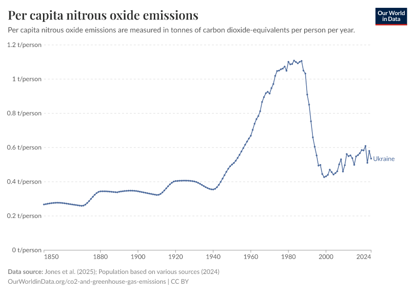 Nitrous oxide: how much does the average person in Ukraine emit? Where do emissions come from?