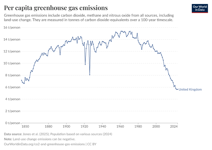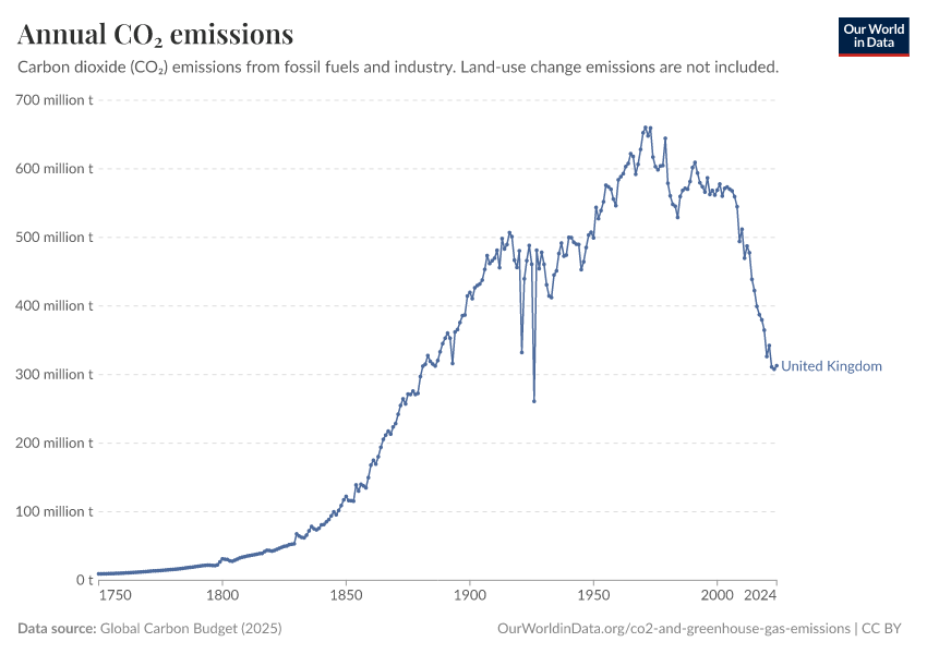 Hannah Ritchie (2025) - “CO₂ and Greenhouse Gas Emissions” Published online at OurWorldinData.org. Retrieved from: 'https://ourworldindata.org/profile/co2/united-kingdom' [Online Resource]BibTeX citation
