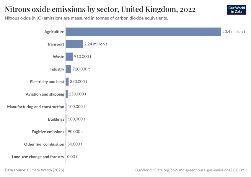Nitrous oxide: how much does the average person in the United Kingdom emit? Where do emissions come from?