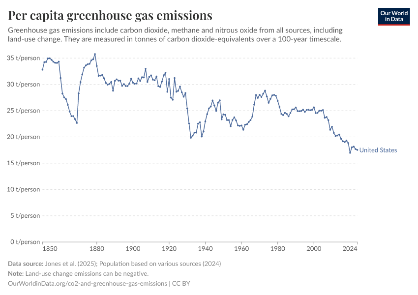 Hannah Ritchie (2025) - “CO₂ and Greenhouse Gas Emissions” Published online at OurWorldinData.org. Retrieved from: 'https://ourworldindata.org/profile/co2/united-states' [Online Resource]BibTeX citation