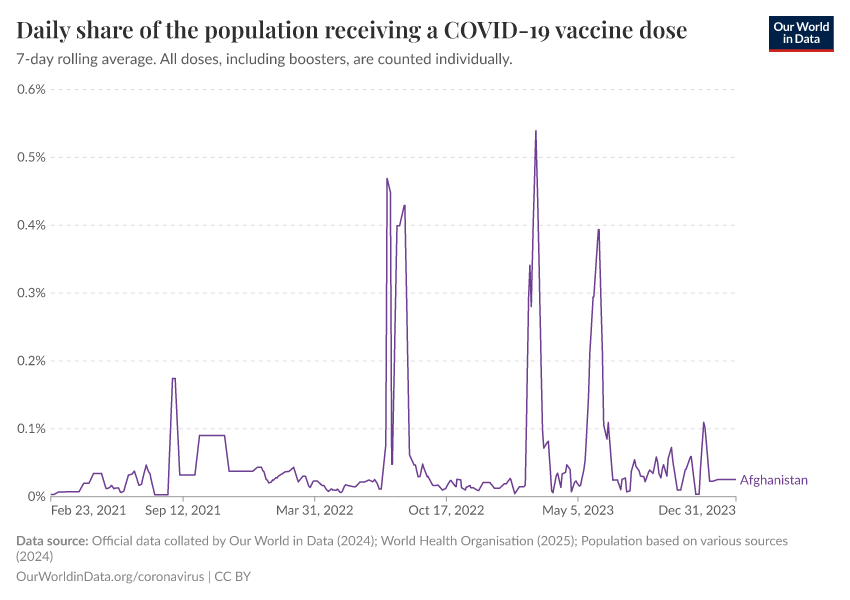 Hannah Ritchie (2025) - “Coronavirus Pandemic” Published online at OurWorldinData.org. Retrieved from: 'https://ourworldindata.org/profile/coronavirus/afghanistan' [Online Resource]BibTeX citation