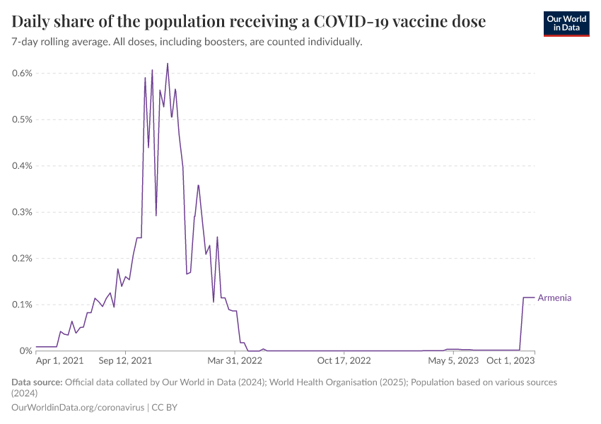Hannah Ritchie (2025) - “Coronavirus Pandemic” Published online at OurWorldinData.org. Retrieved from: 'https://ourworldindata.org/profile/coronavirus/armenia' [Online Resource]BibTeX citation