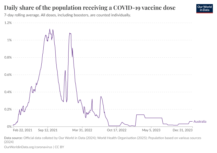 Hannah Ritchie (2025) - “Coronavirus Pandemic” Published online at OurWorldinData.org. Retrieved from: 'https://ourworldindata.org/profile/coronavirus/australia' [Online Resource]BibTeX citation