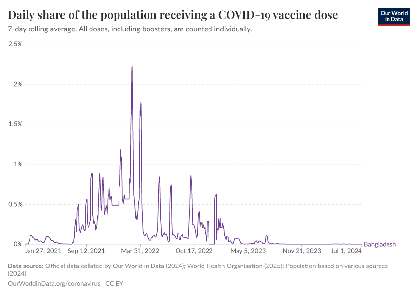 Hannah Ritchie (2025) - “Coronavirus Pandemic” Published online at OurWorldinData.org. Retrieved from: 'https://ourworldindata.org/profile/coronavirus/bangladesh' [Online Resource]BibTeX citation
