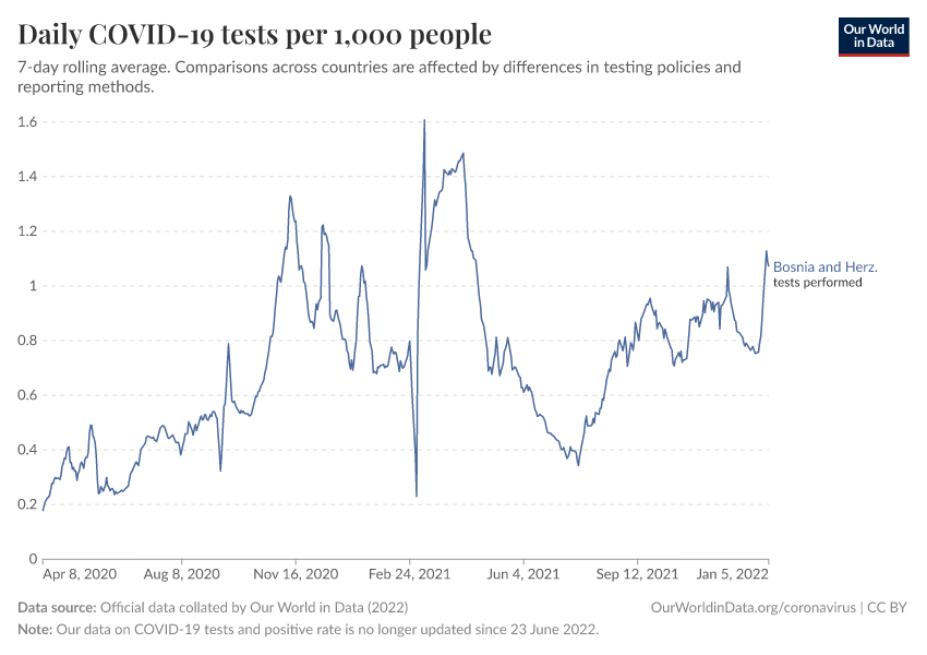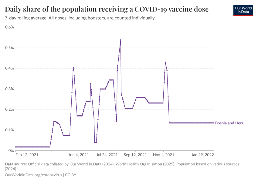 Hannah Ritchie (2025) - “Coronavirus Pandemic” Published online at OurWorldinData.org. Retrieved from: 'https://ourworldindata.org/profile/coronavirus/bosnia-and-herzegovina' [Online Resource]BibTeX citation